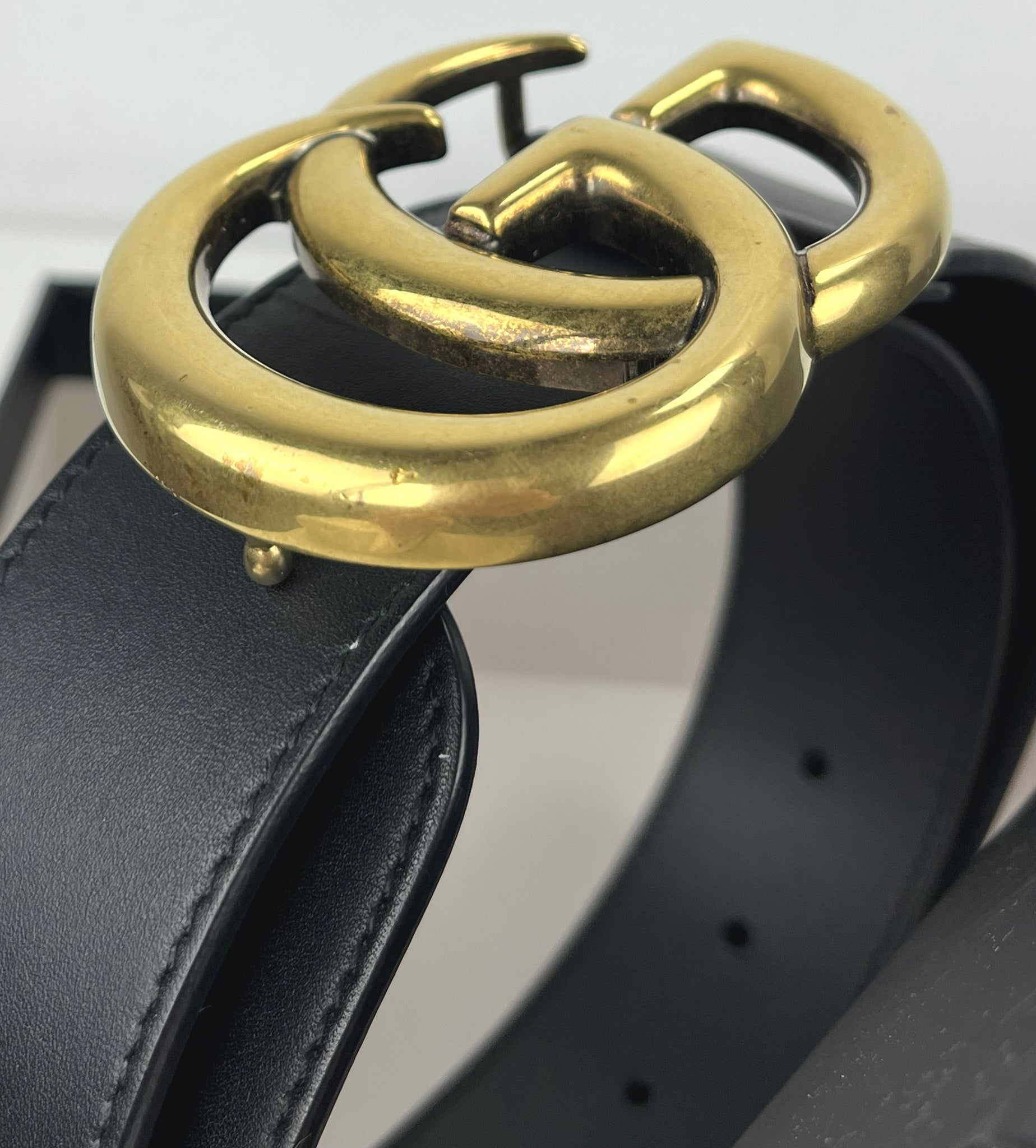 Authentic Gucci leather belt with double G buckle. Color; matte black