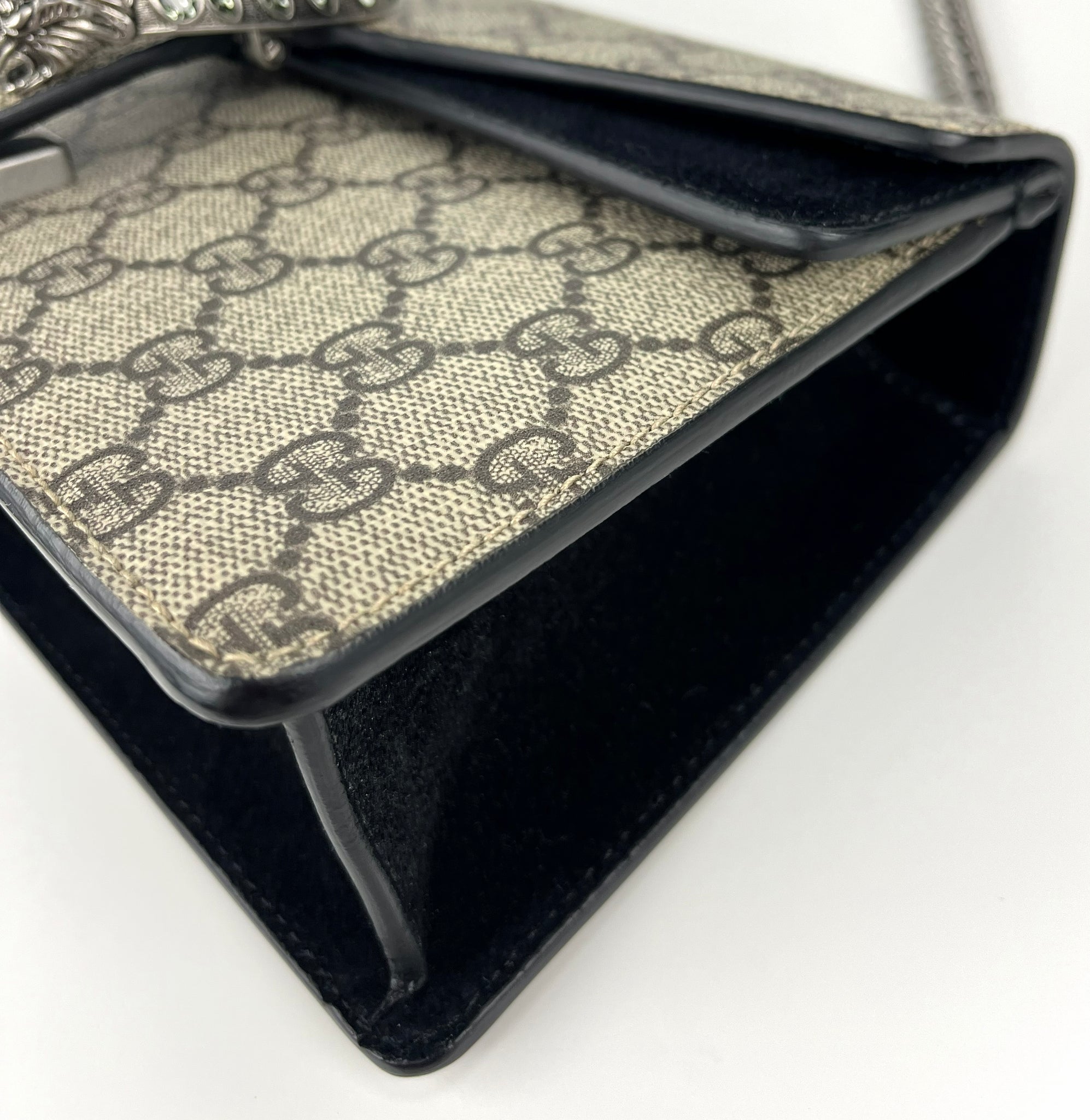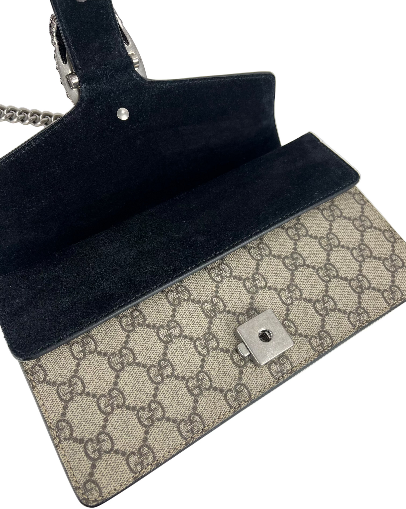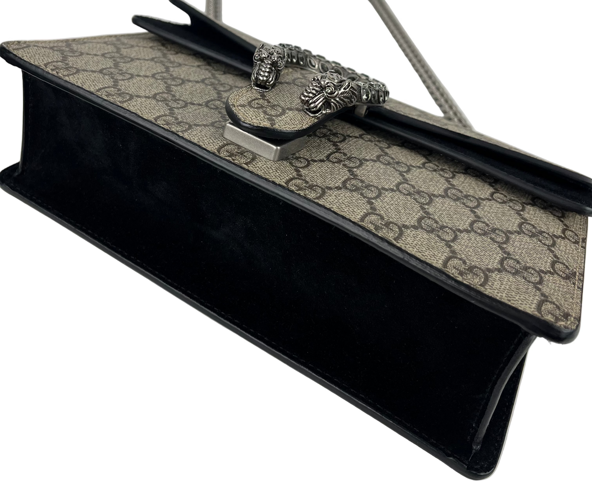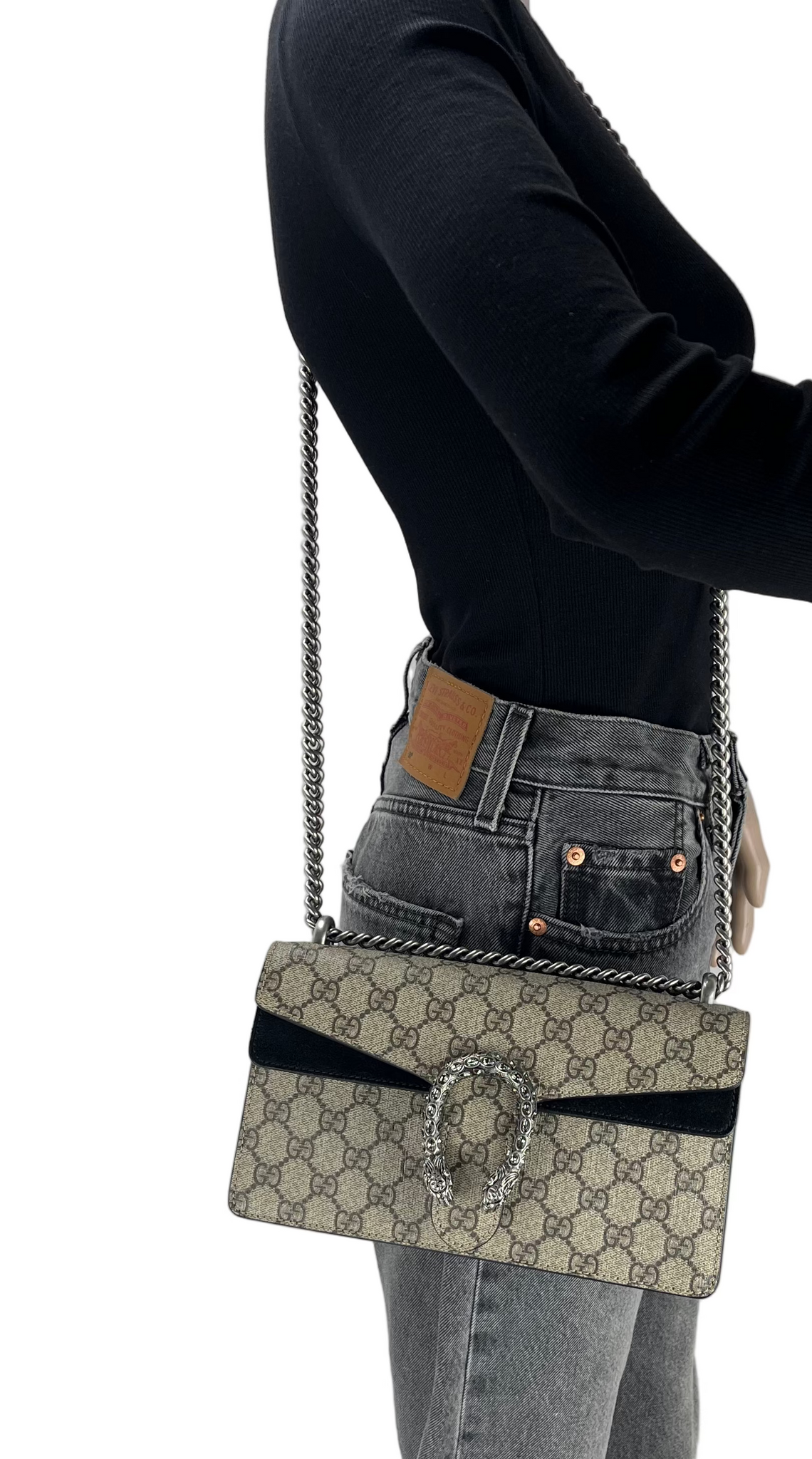 Authentic Gucci dionysus small embellished GG canvas and suede shoulder bag .