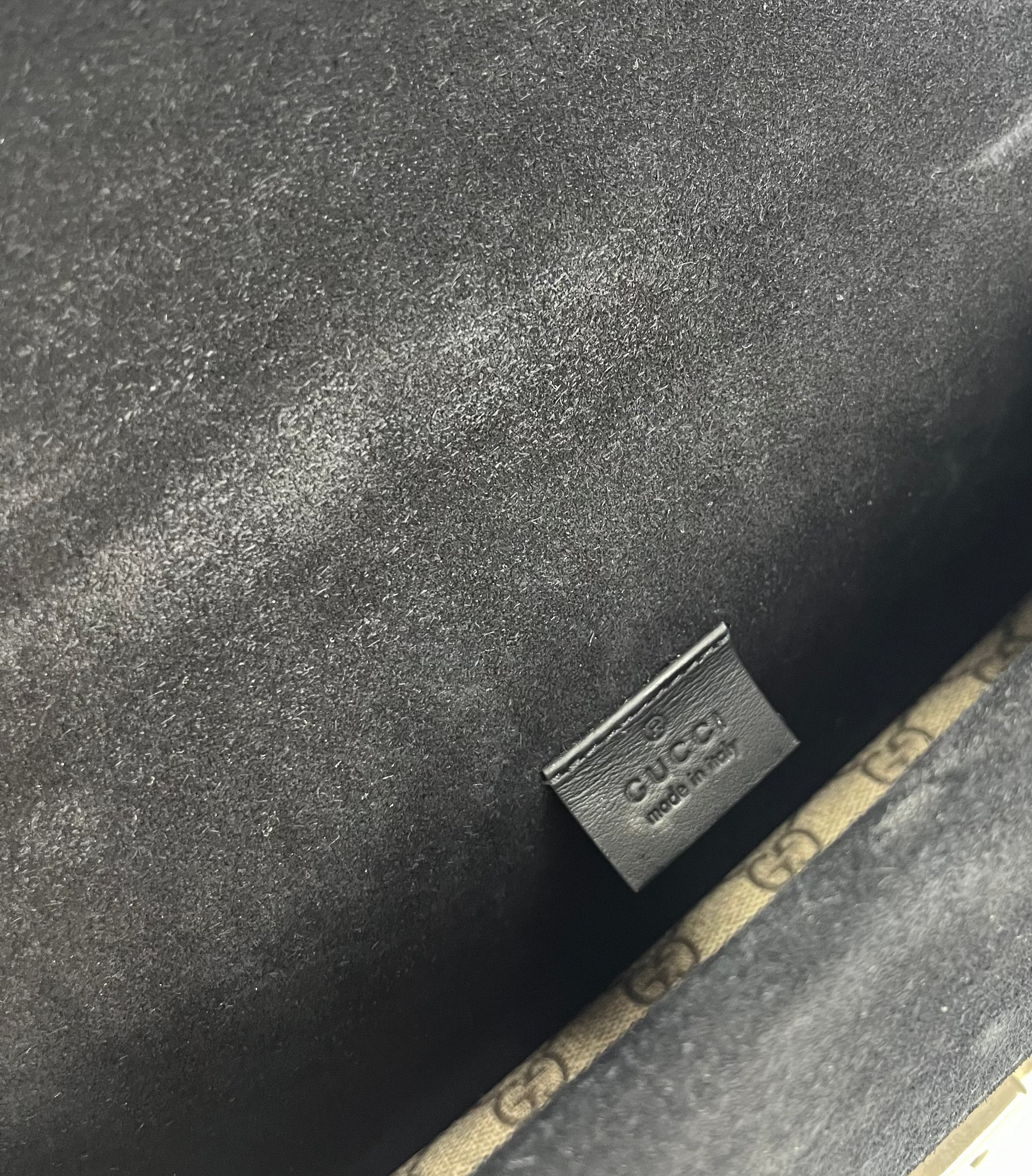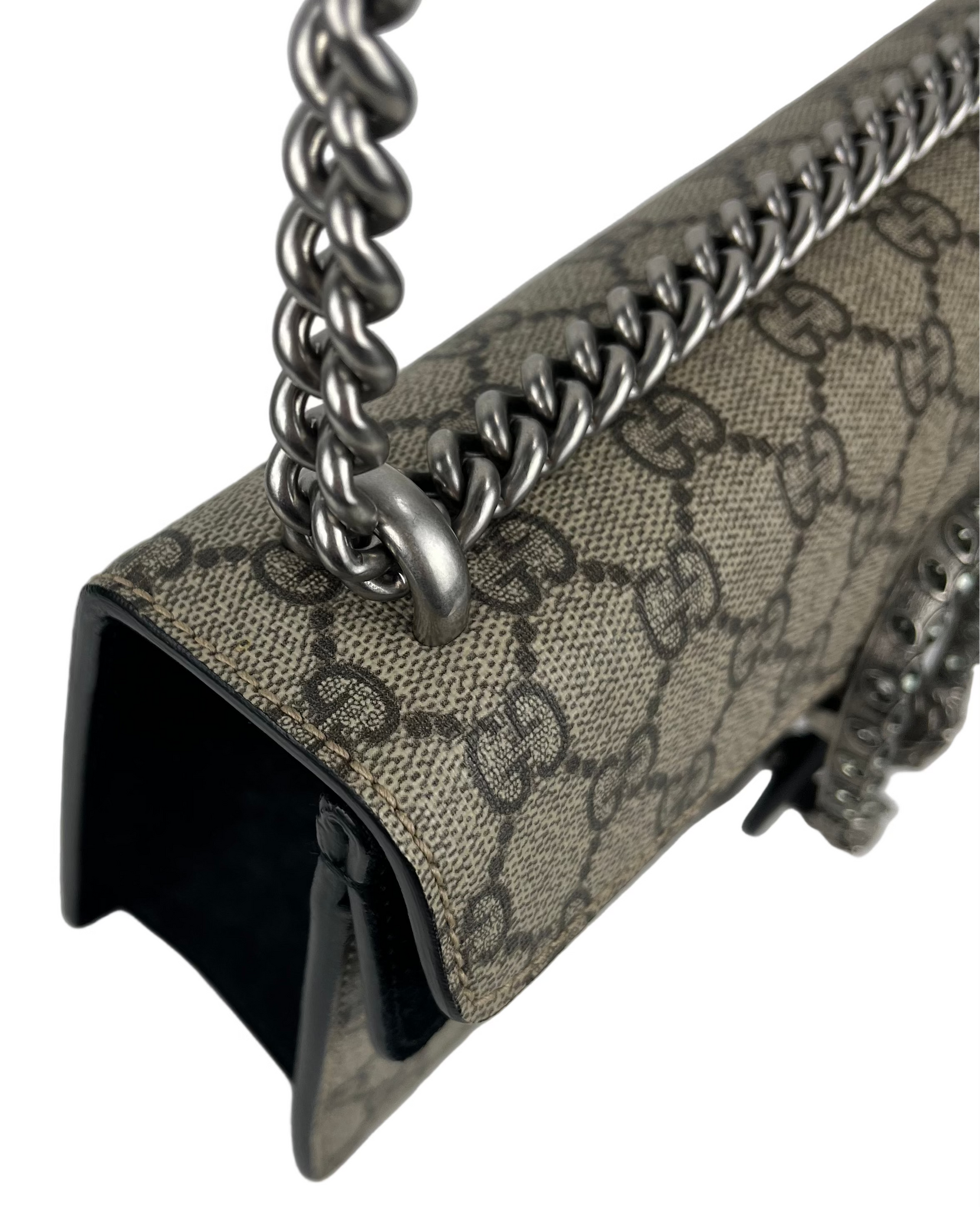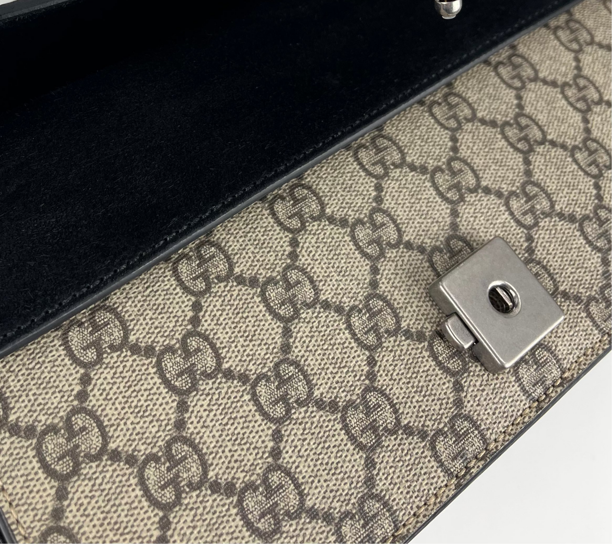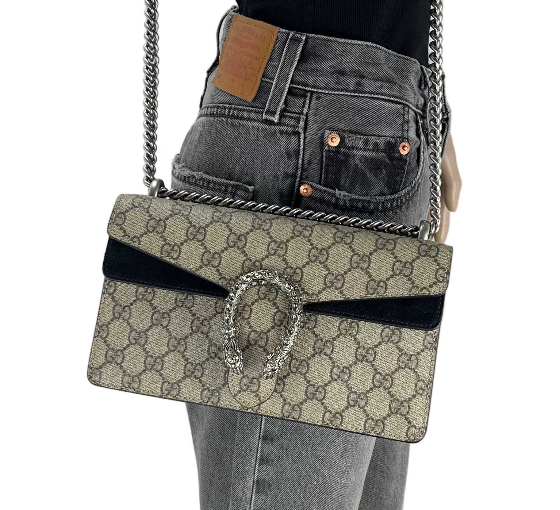 Authentic Gucci dionysus small embellished GG canvas and suede shoulder bag .