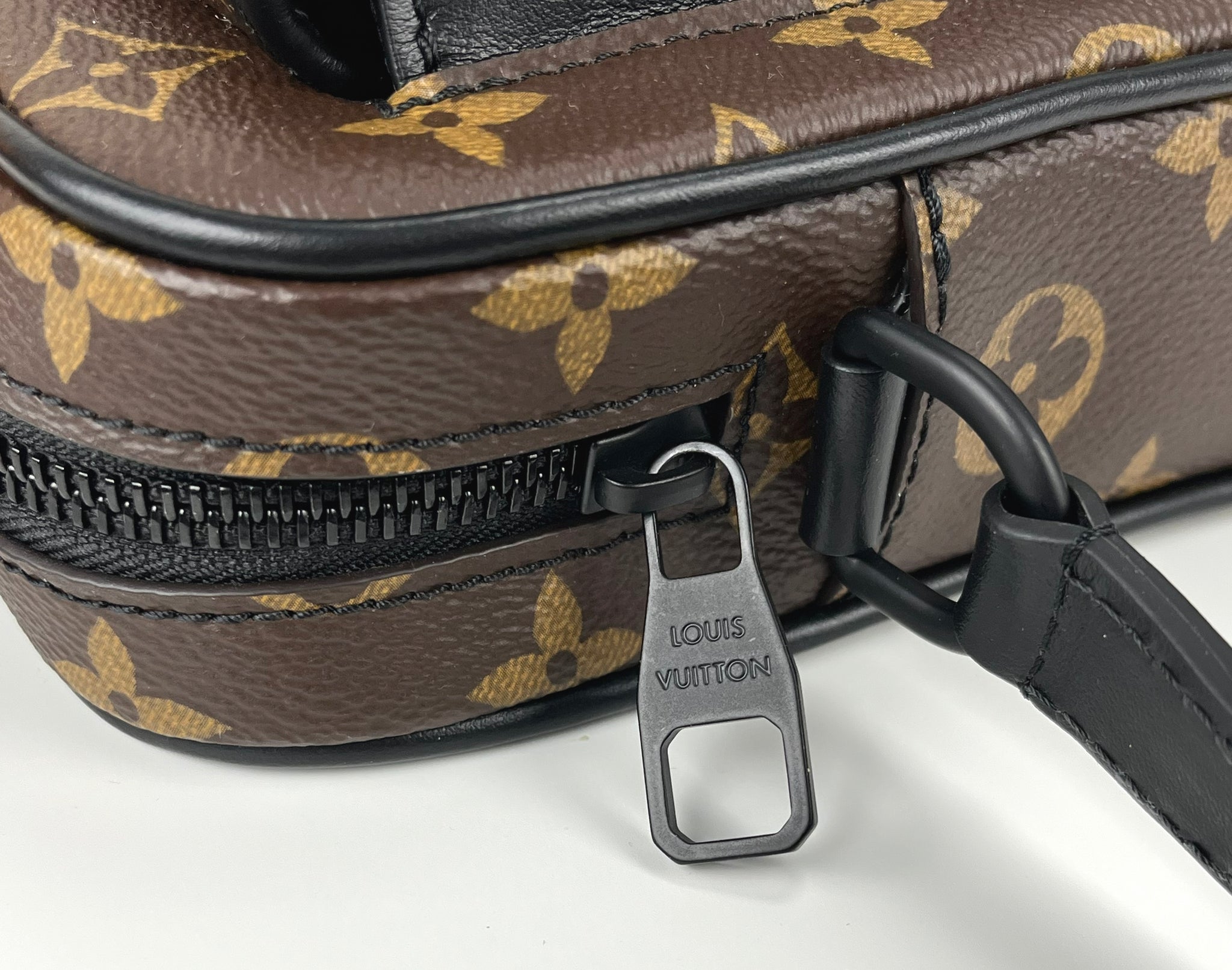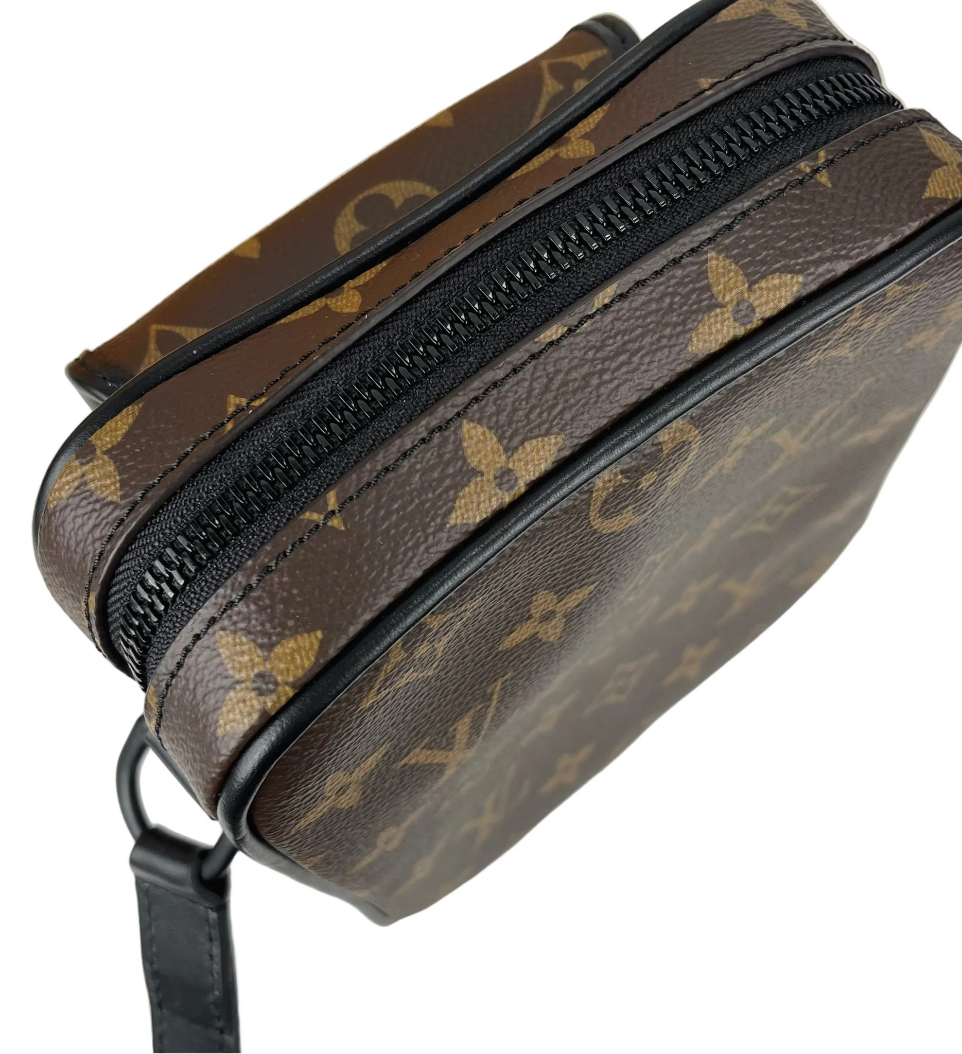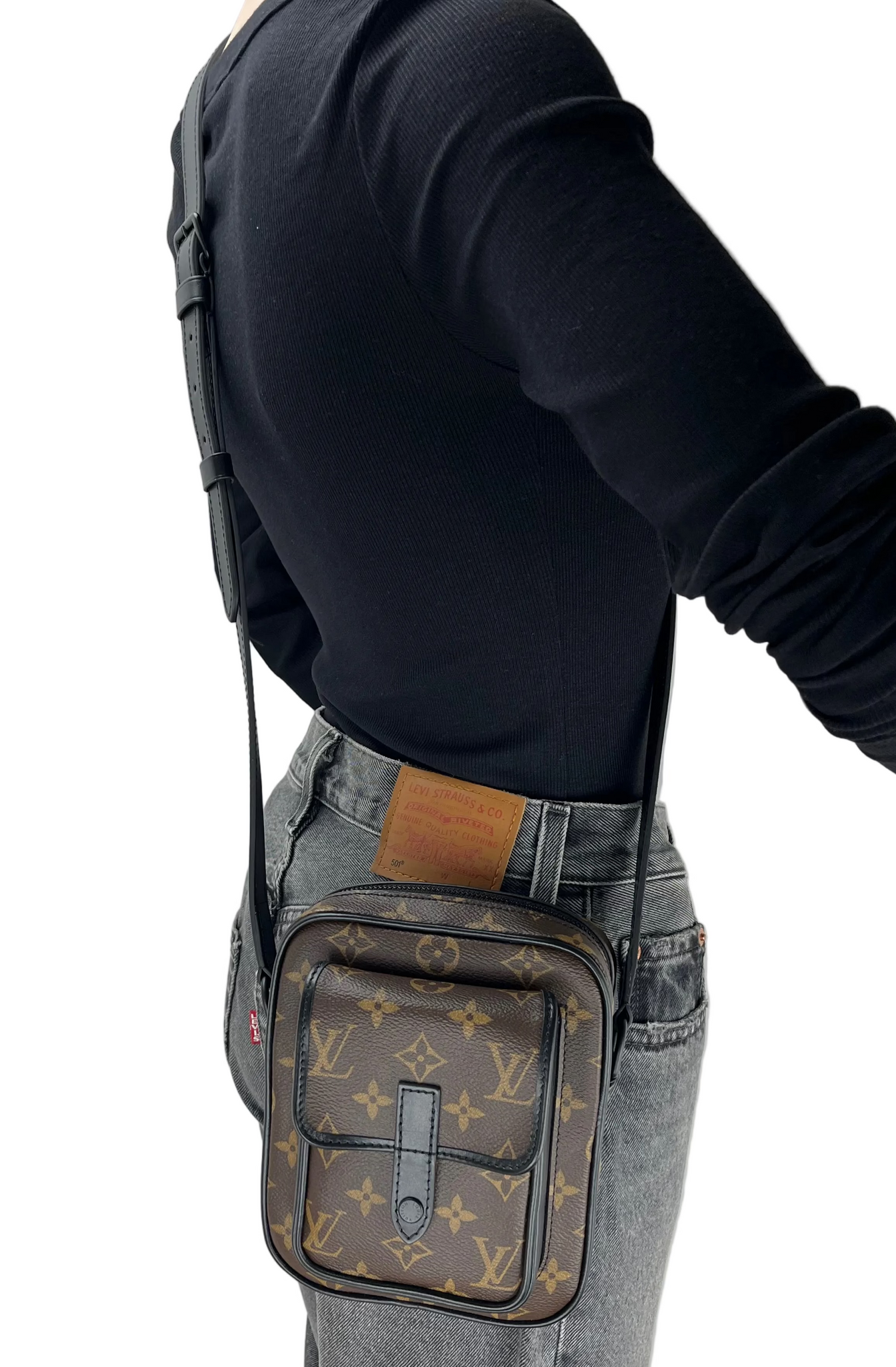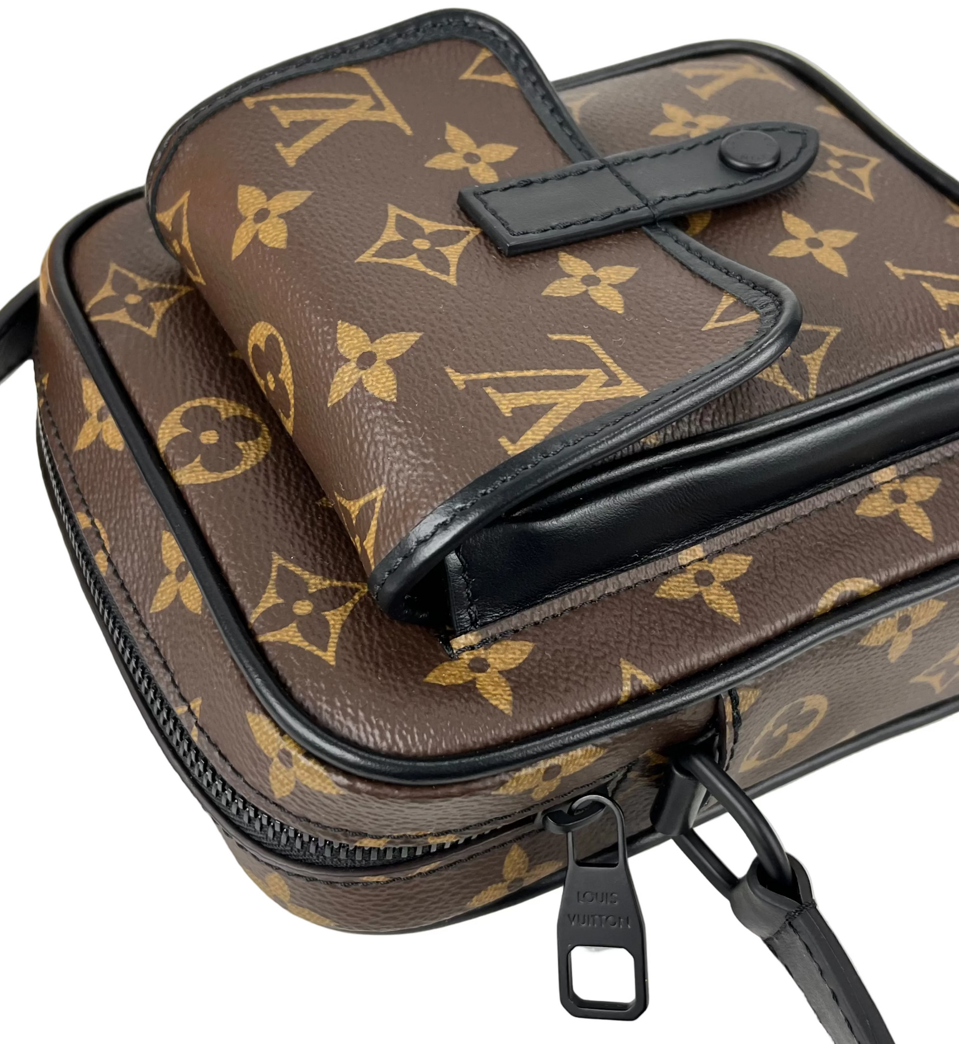 Authentic Louis Vuitton Christopher wearable wallet. Macassar canvas. Matte black hardware. Adjustable cross body strap. Strap drop 50cm, maximum 57cm drop. Front pocket. 3 credit card slots. 15X17X8cm. Item M69404