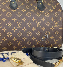 Authentic Louis Vuitton speedy 30  World Tour. Monogram with black leather details. One sticker. 30X21X17cm. Red lining. Price at Louis Vuitton SEK23500