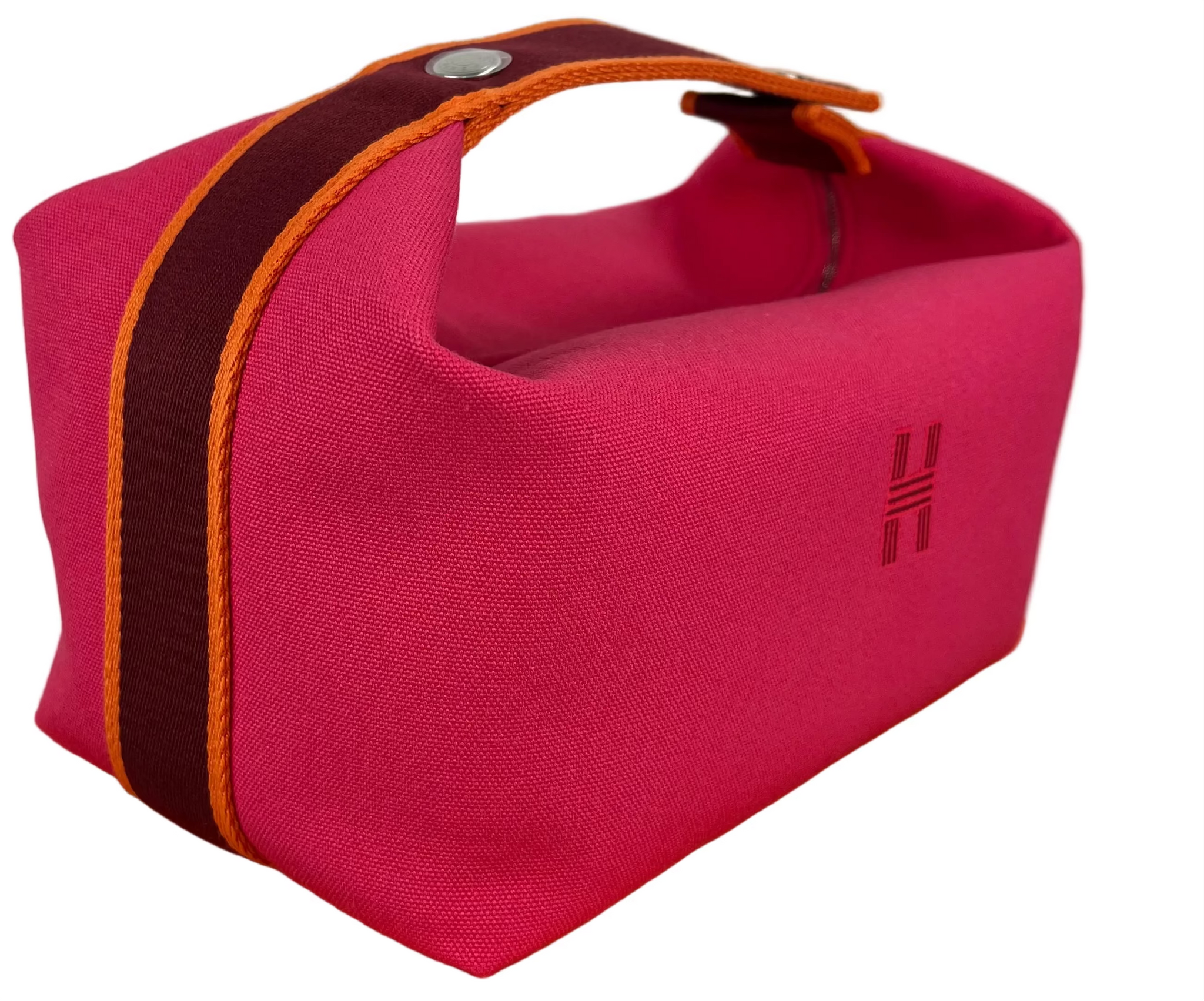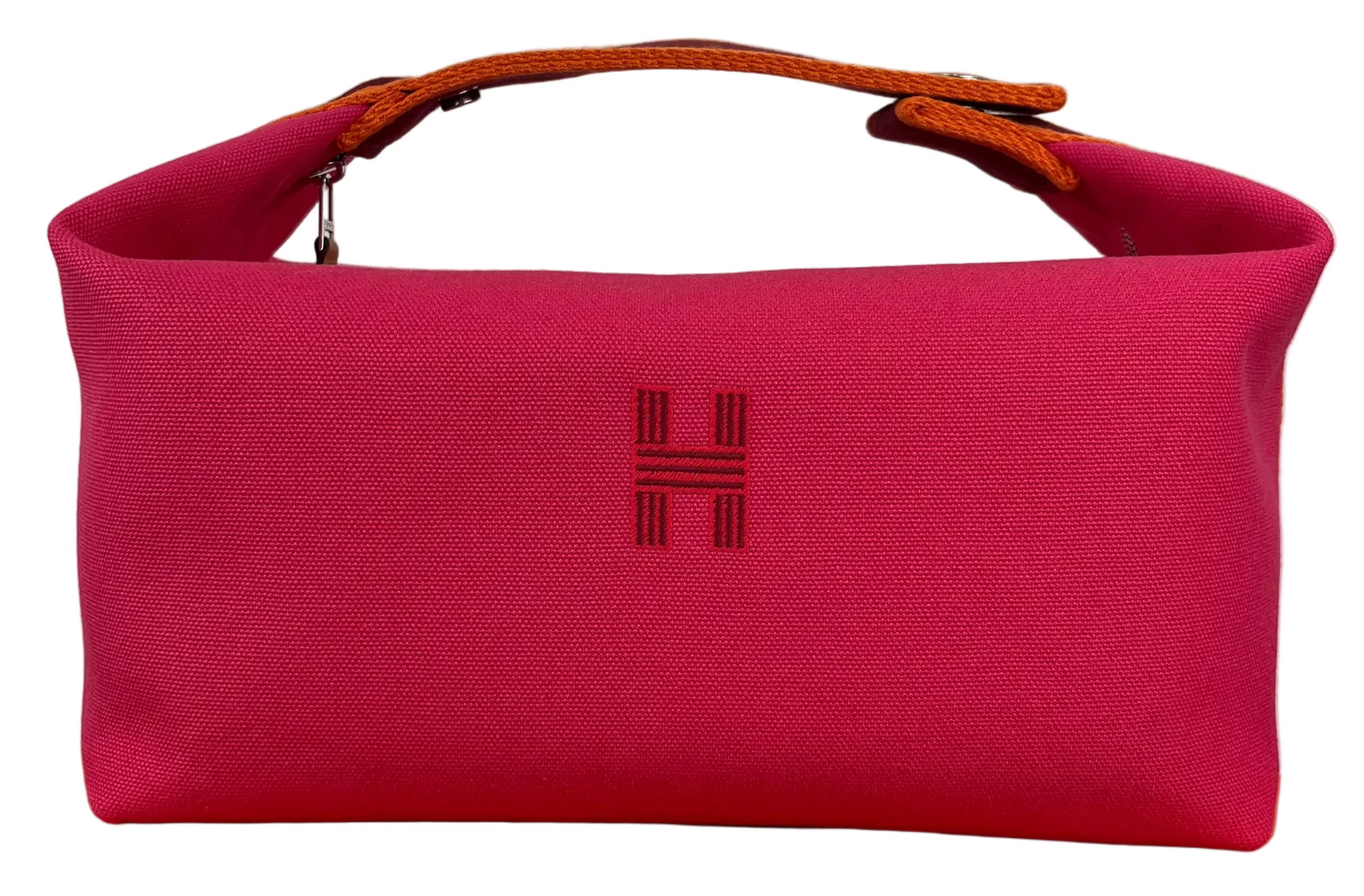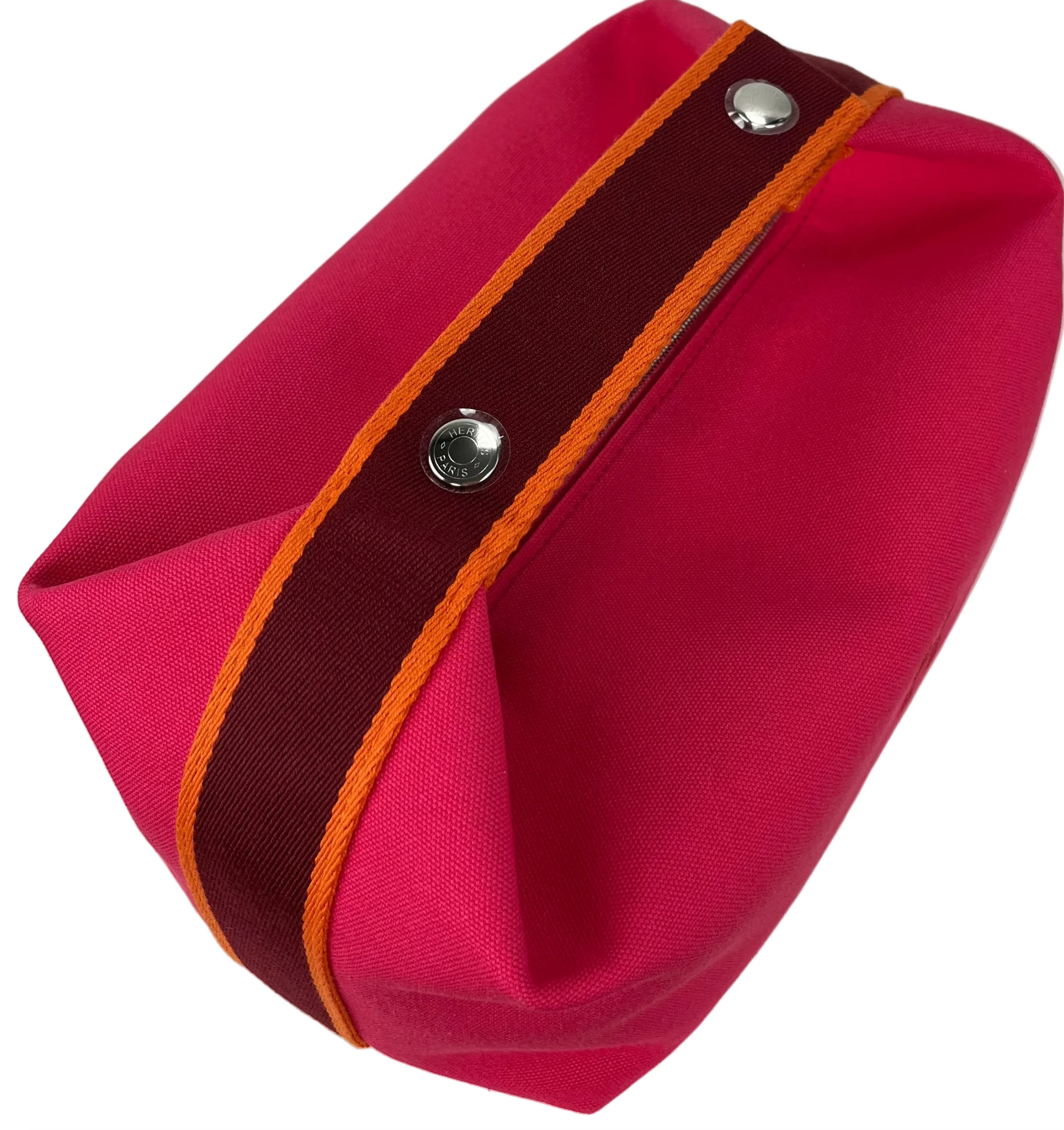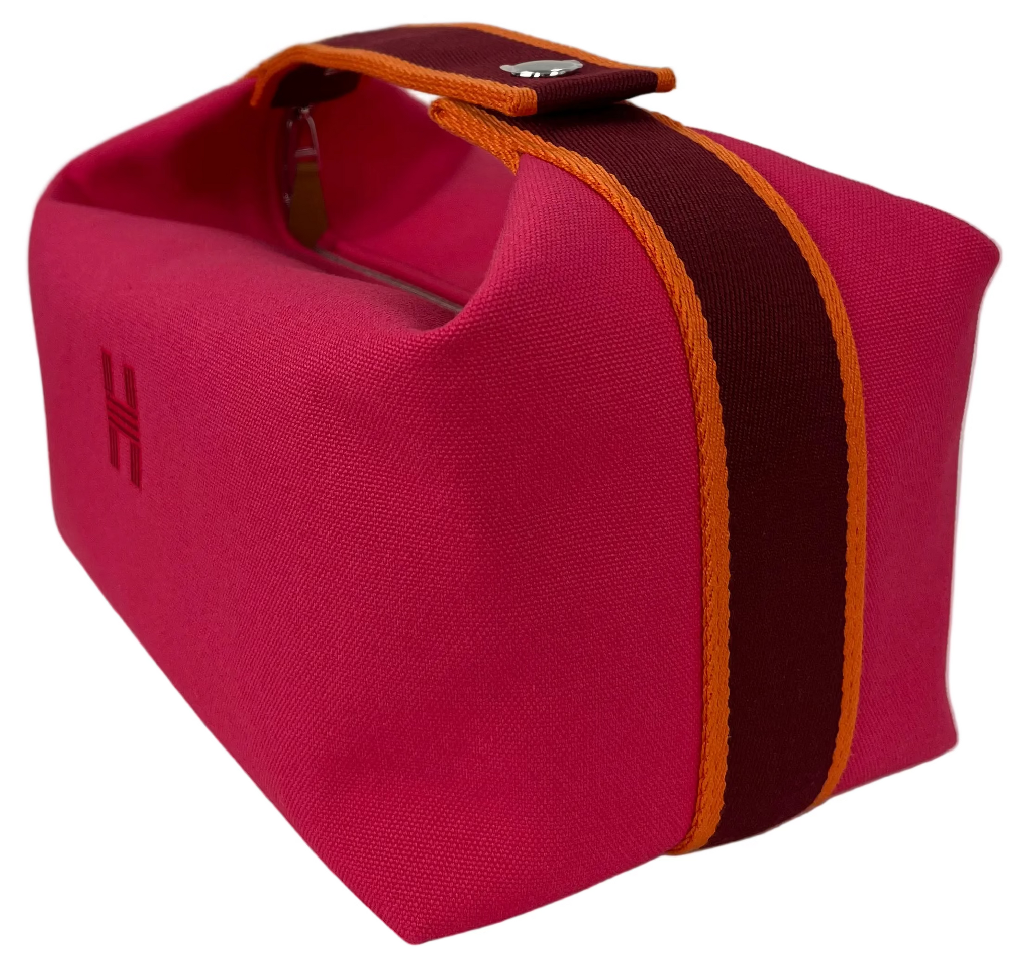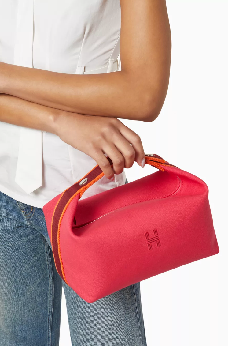 Authentic Hermes Bride-a-Brac large in Hibiscus. 100% cotton. Embroidered "H" motif (96% polyester, 4% ceramic). 3 interior pockets. 25X21X14cm