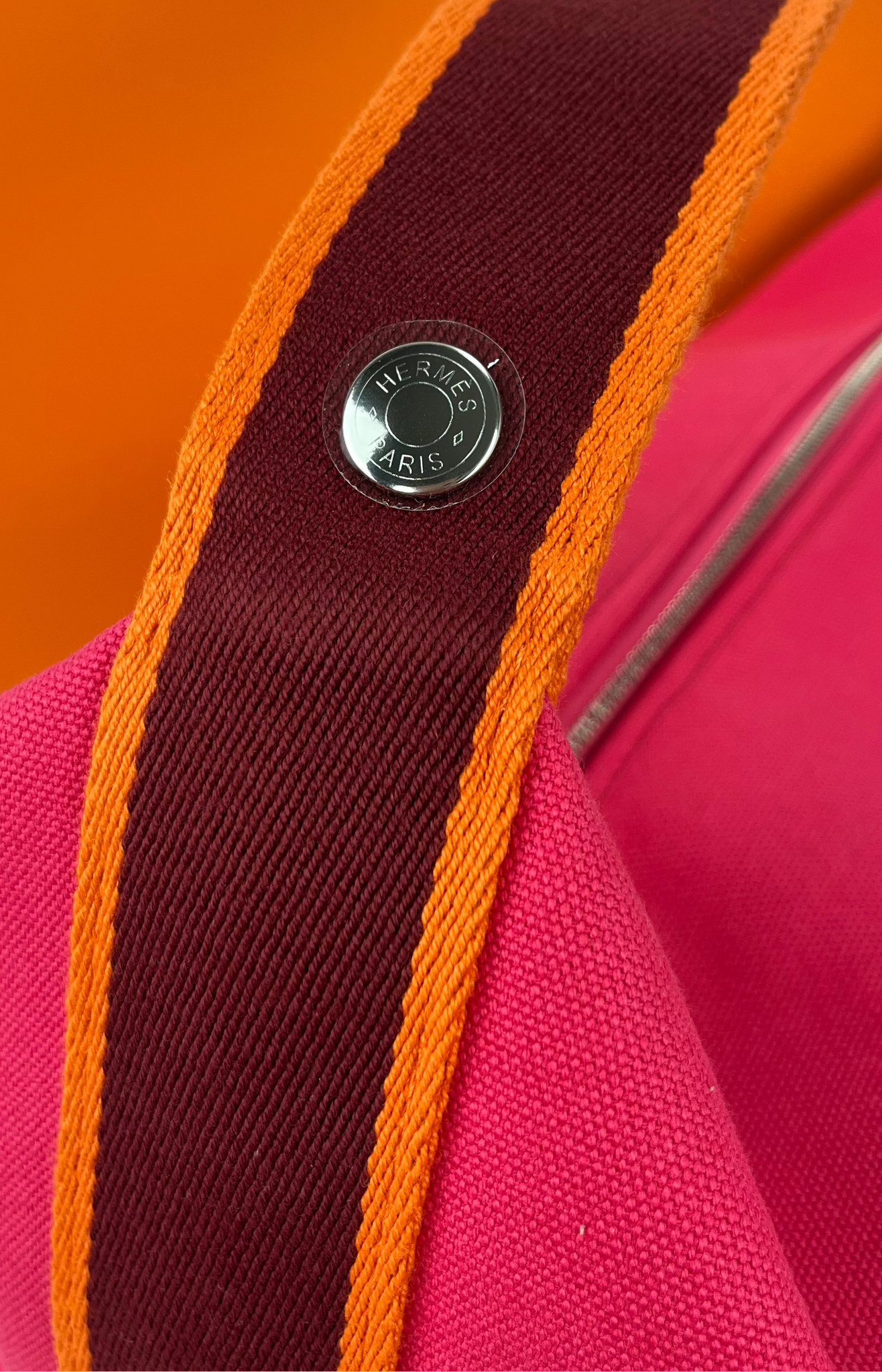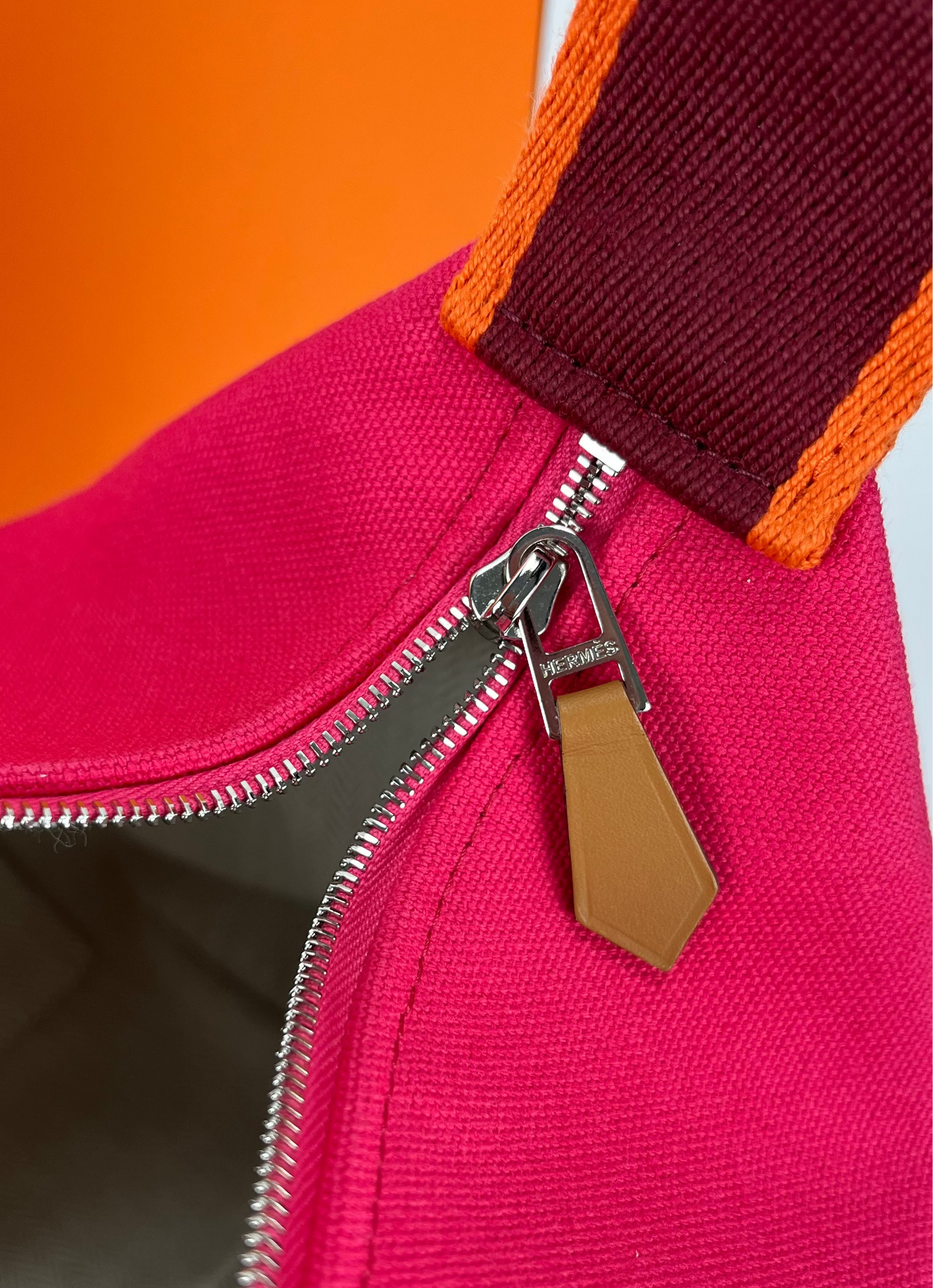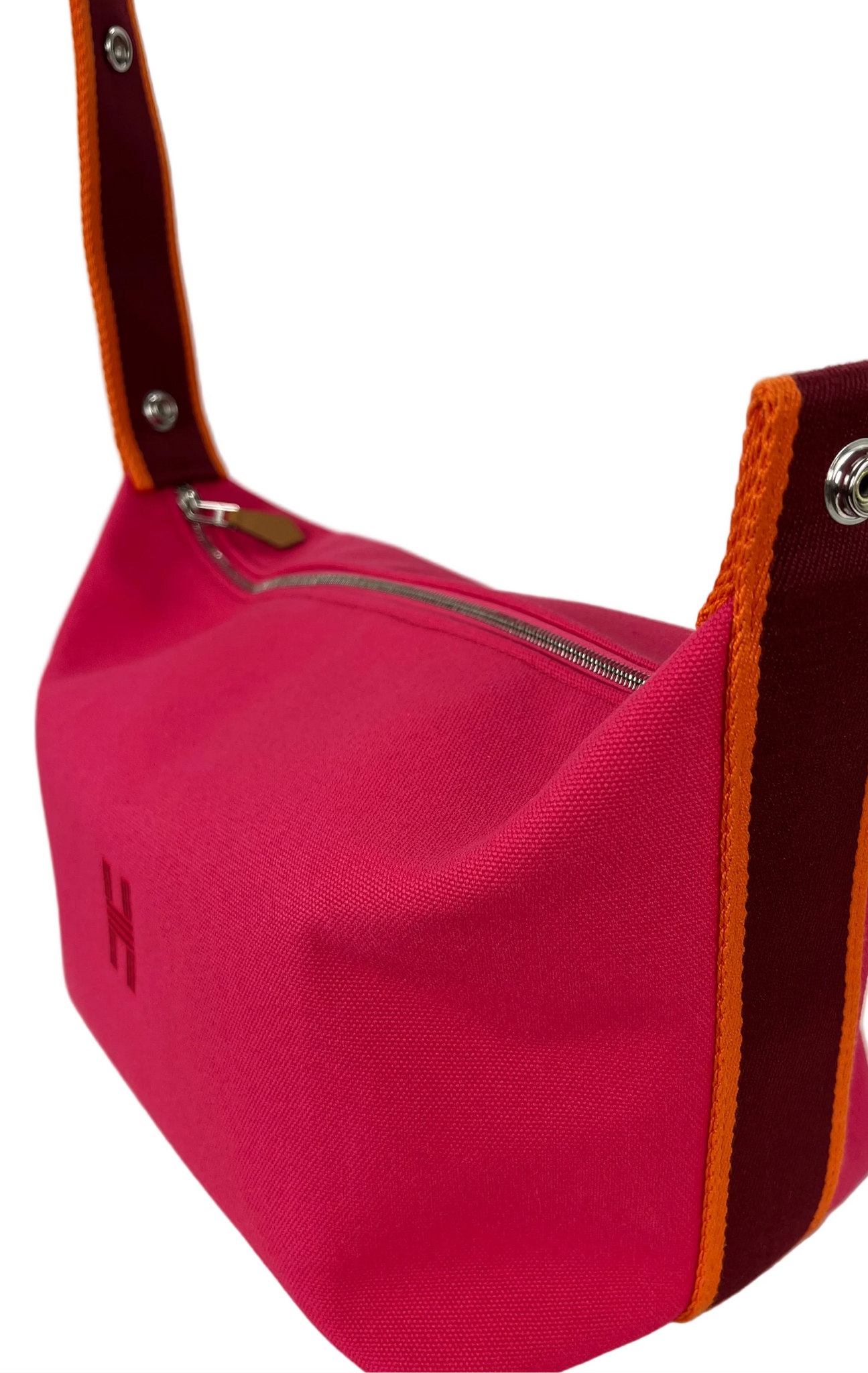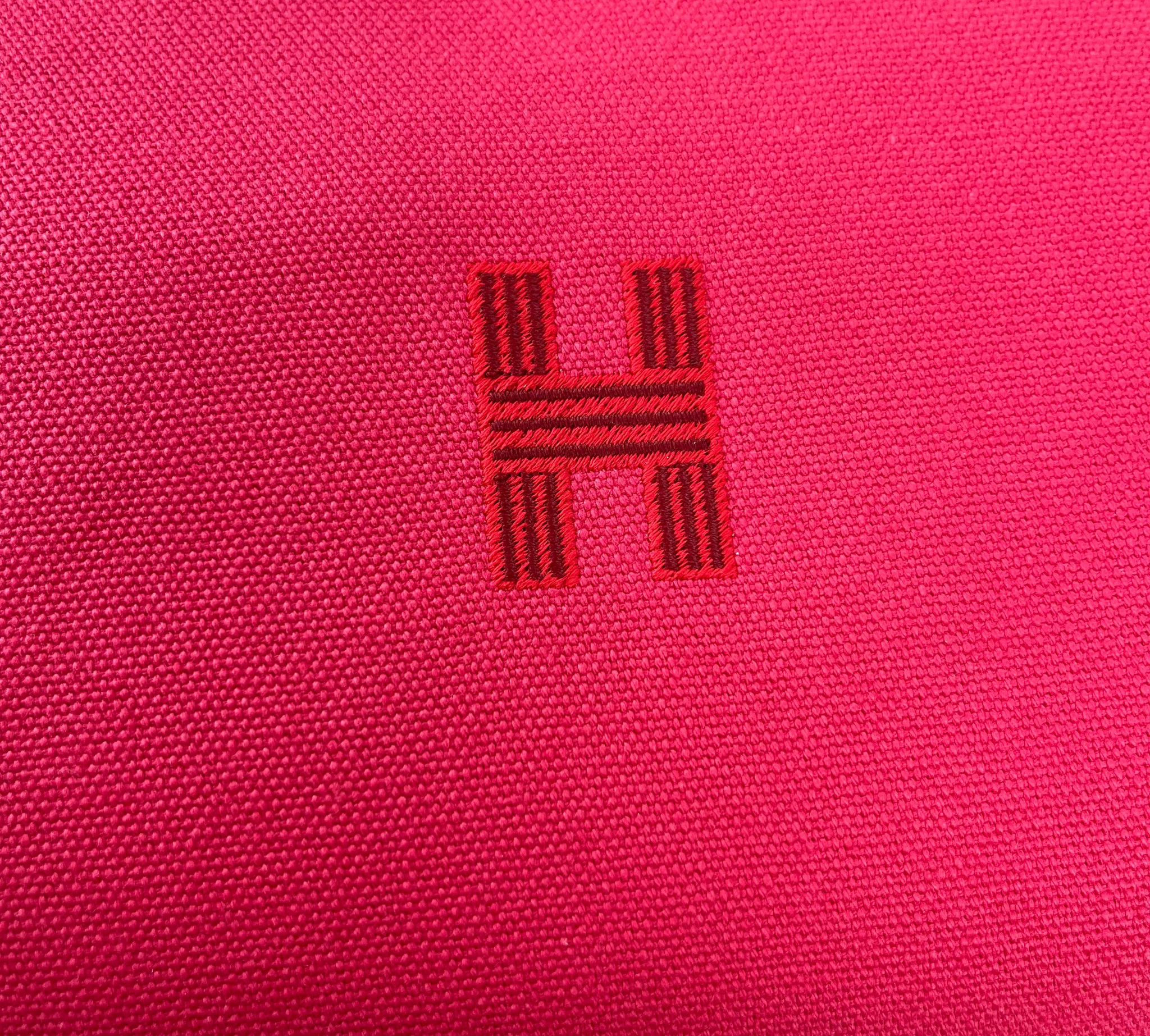 Authentic Hermes Bride-a-Brac large in Hibiscus. 100% cotton. Embroidered "H" motif (96% polyester, 4% ceramic). 3 interior pockets. 25X21X14cm