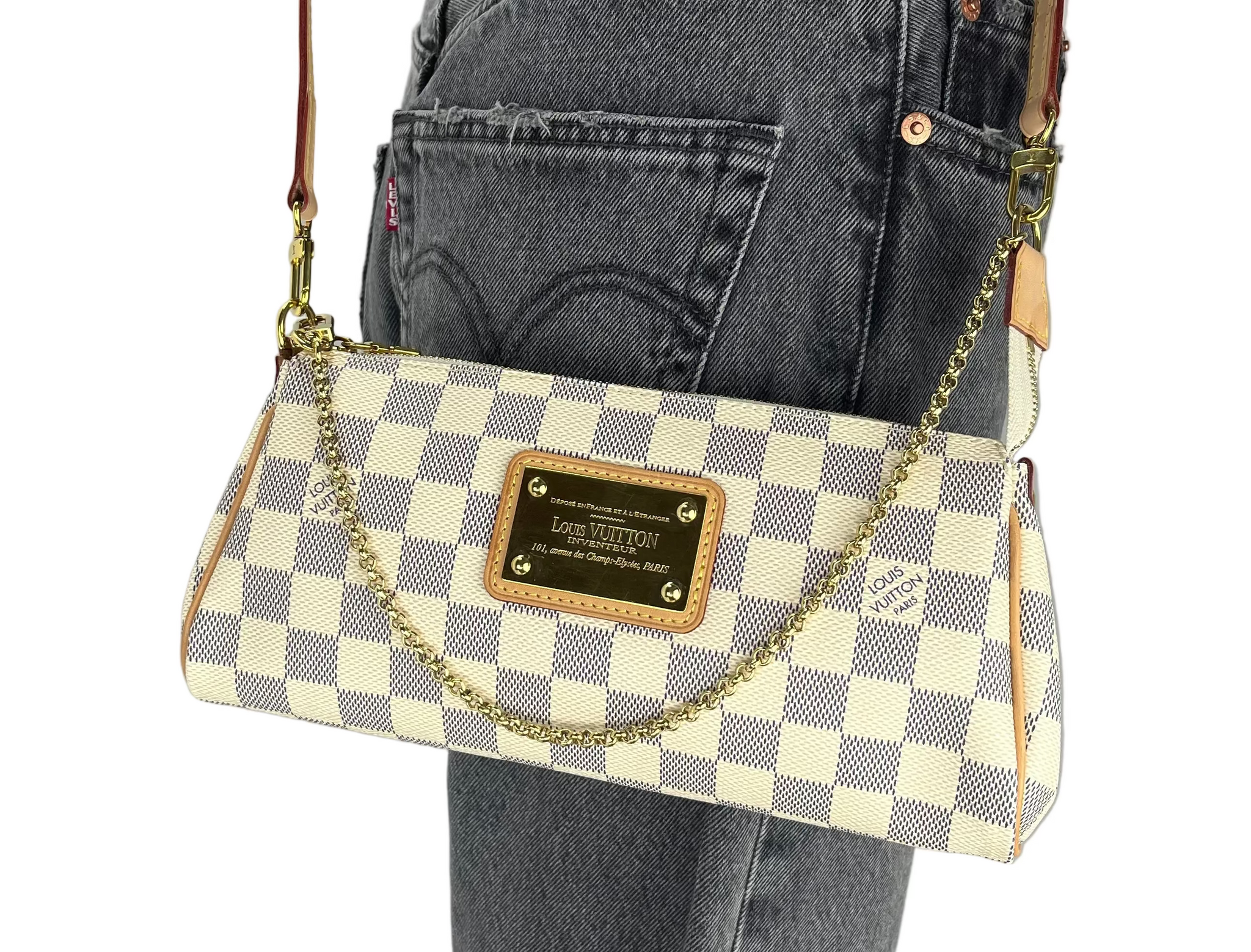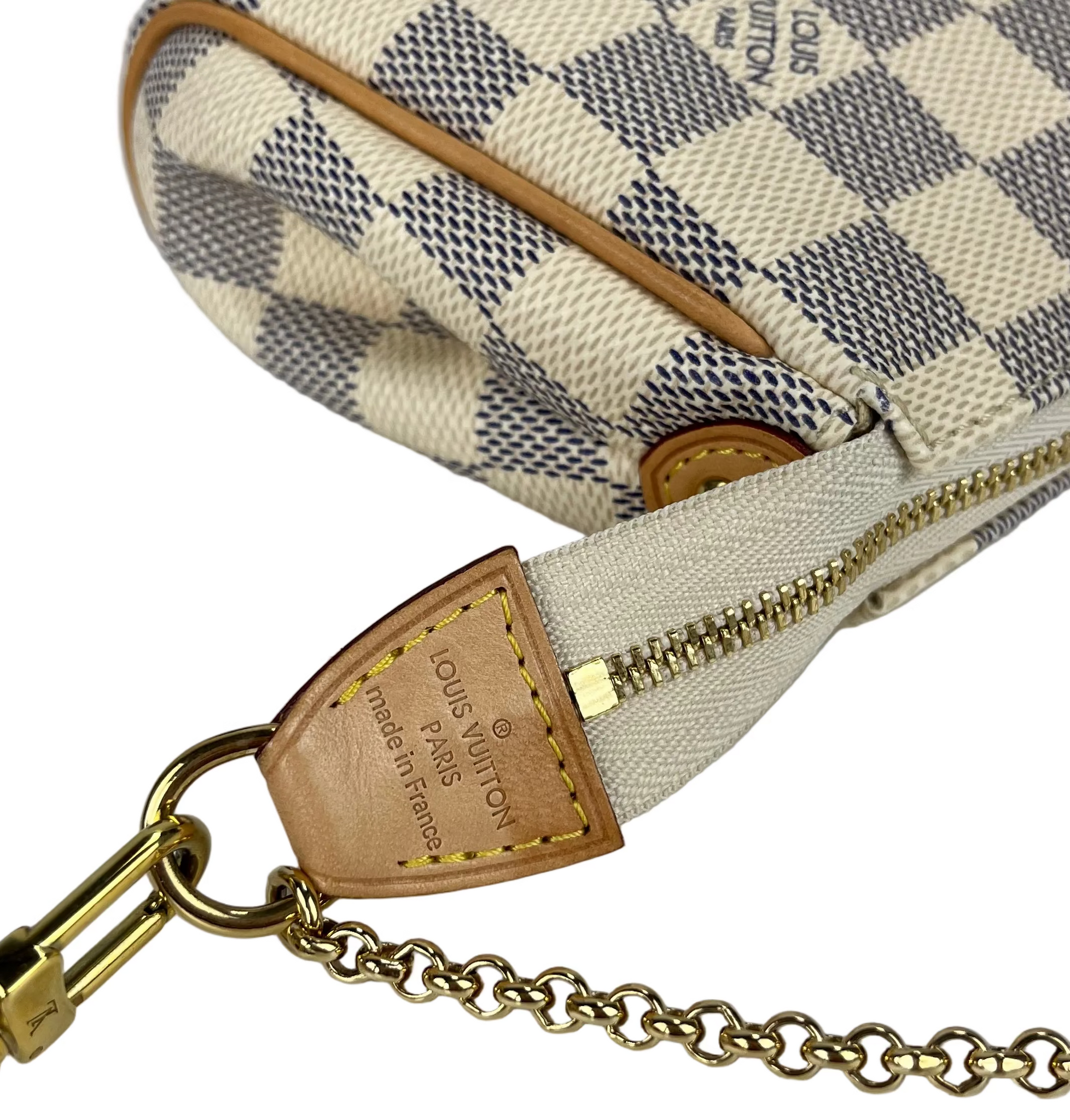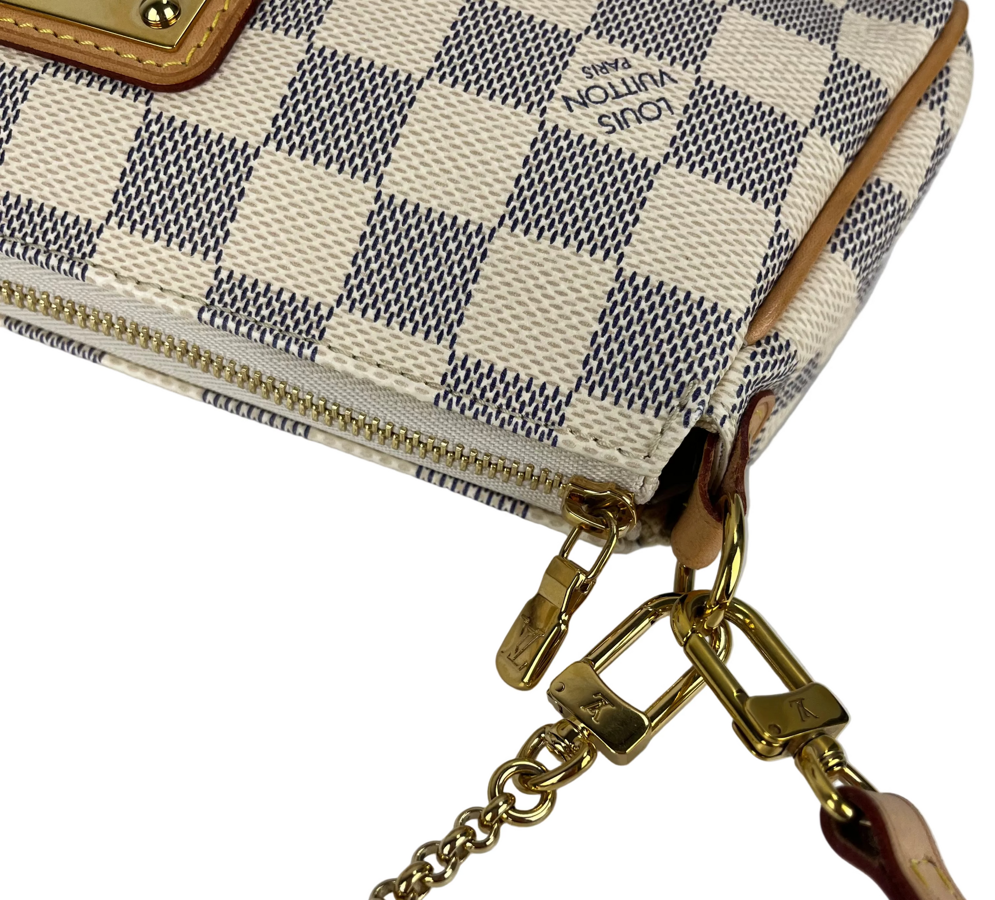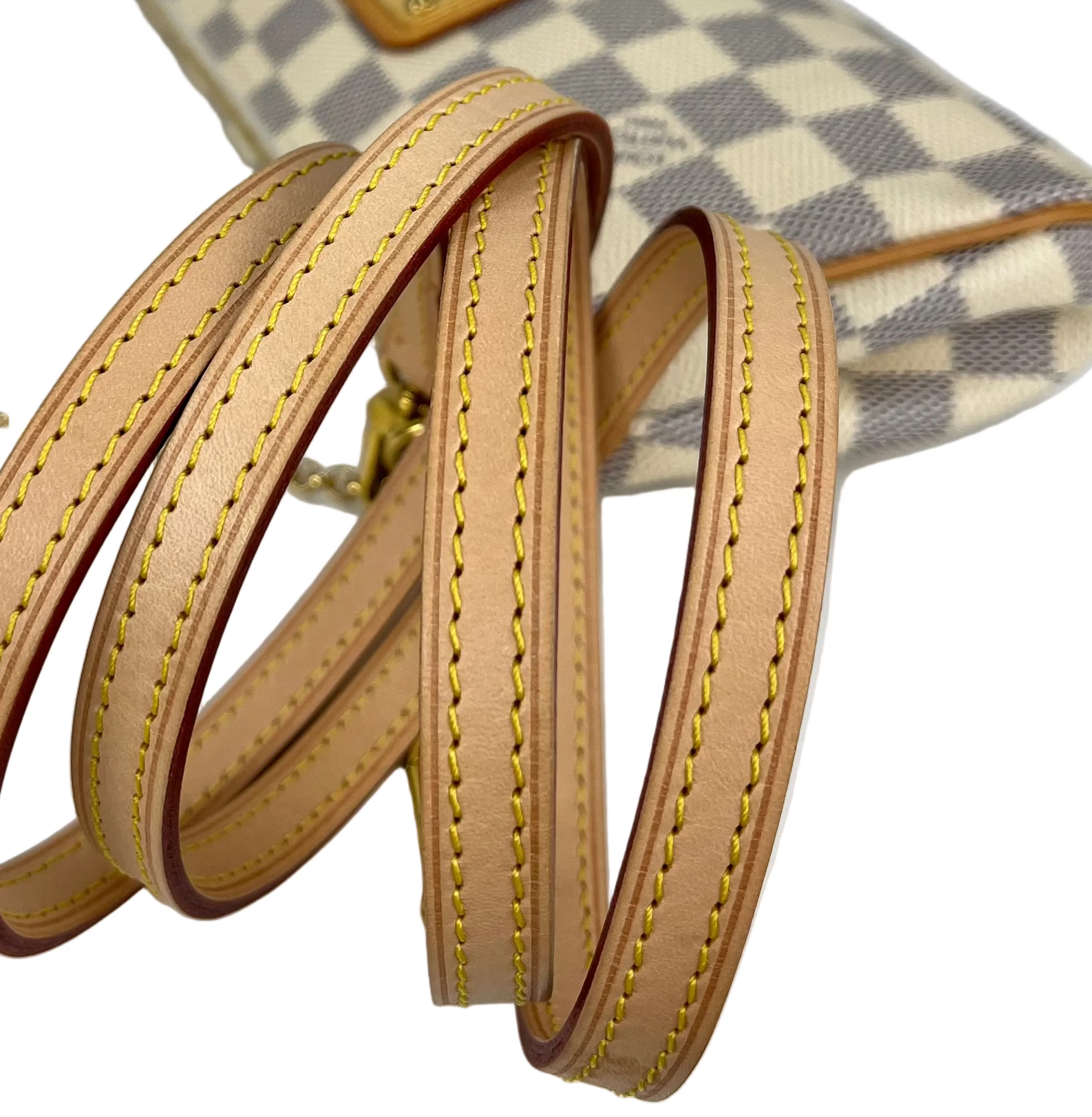 EXTERIOR: Canvas is clean. Light patina. Minimal signs of use on the leather. Strap has hardly been used.
