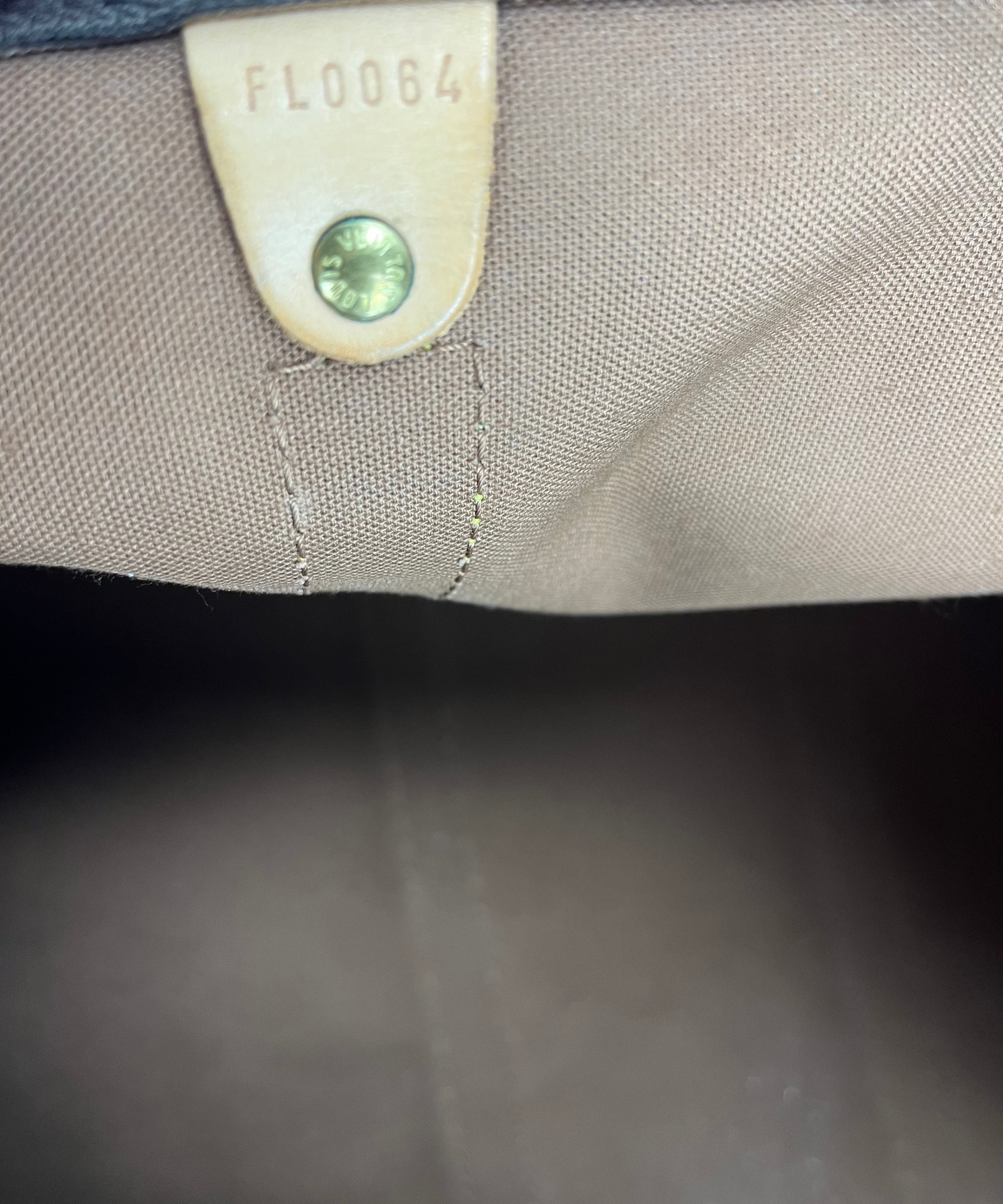 EXTERIOR: Canvas is flawless. No marks on the corners. Patina with watermarks and marks throughout.
