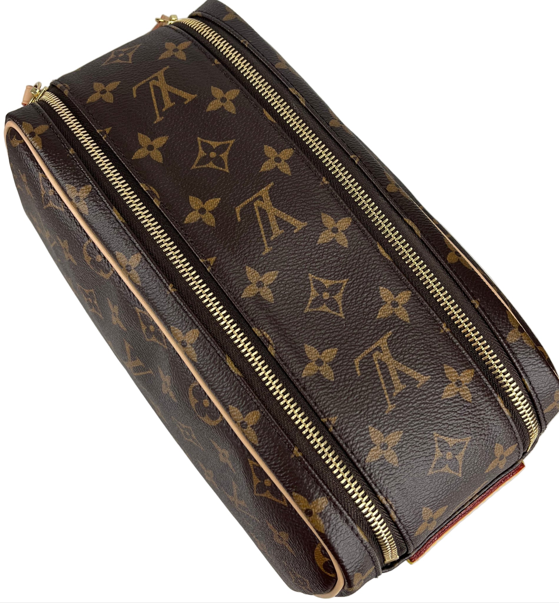 Authentic Louis Vuitton dopp kit pouch in monogram canvas. Washable lining. 28X15X16.5cm