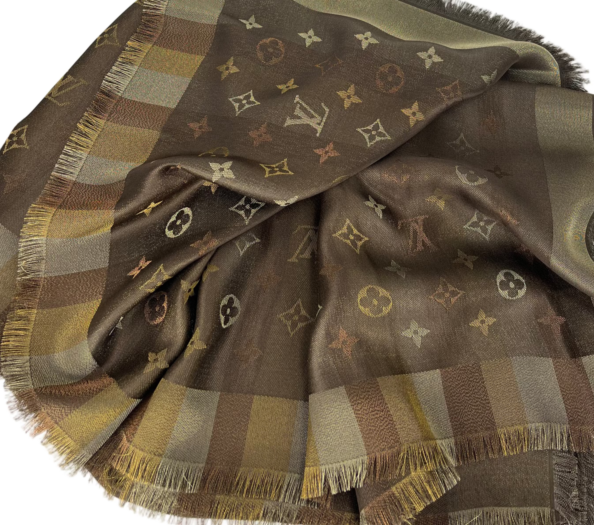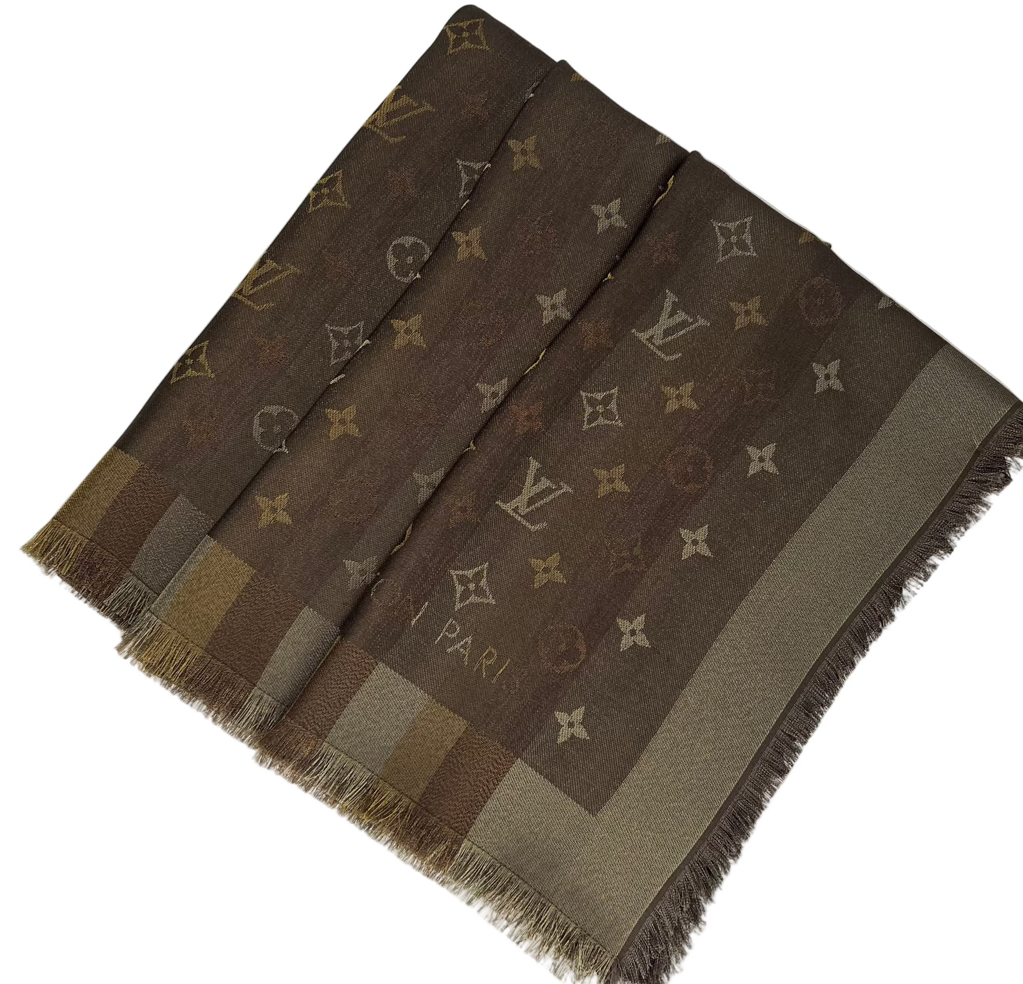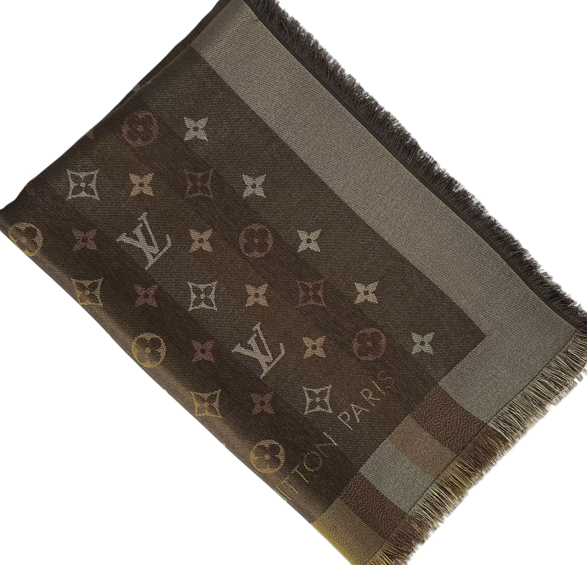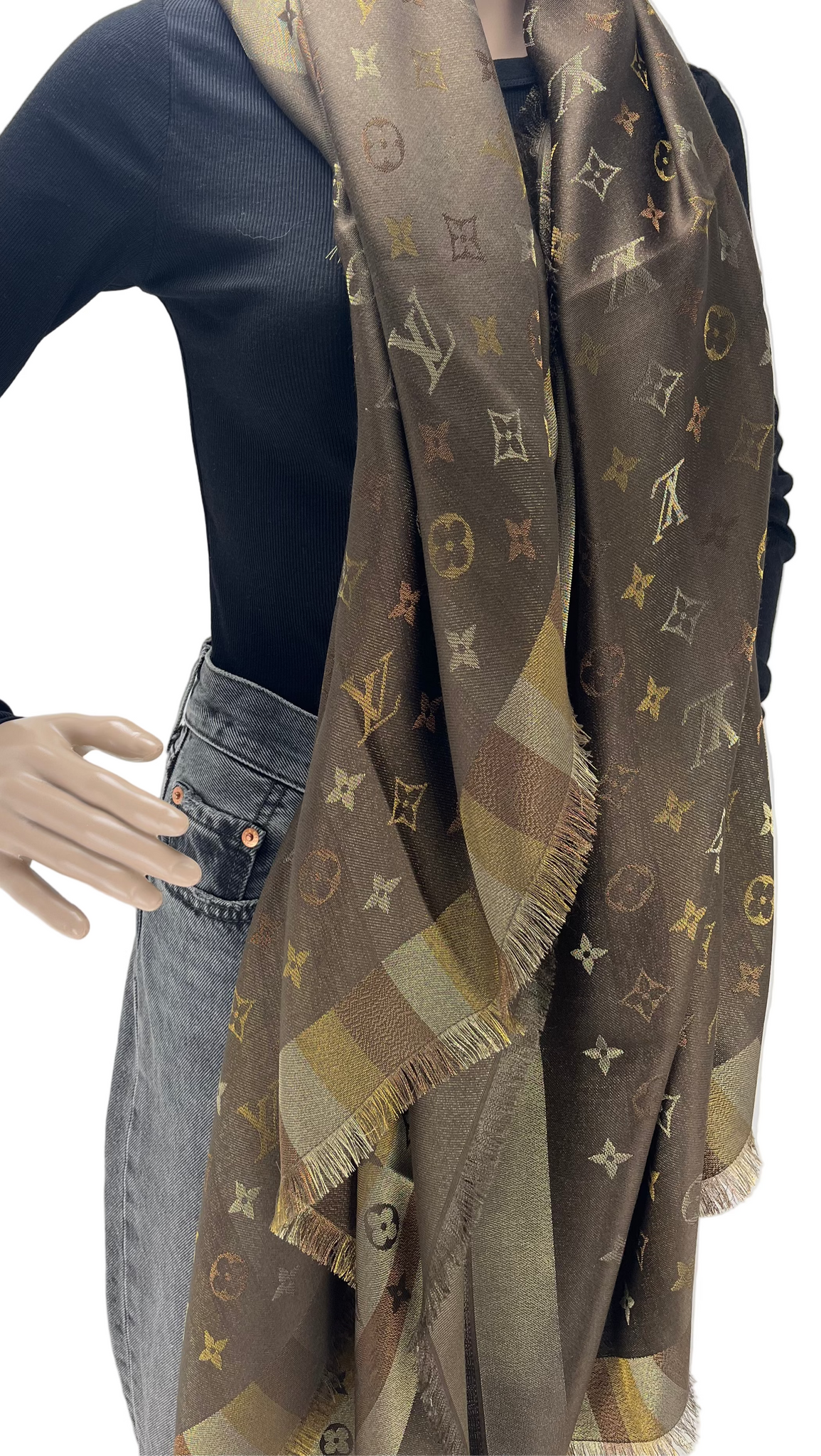 Authentic Louis Vuitton so shine monogram shawl in brown.
