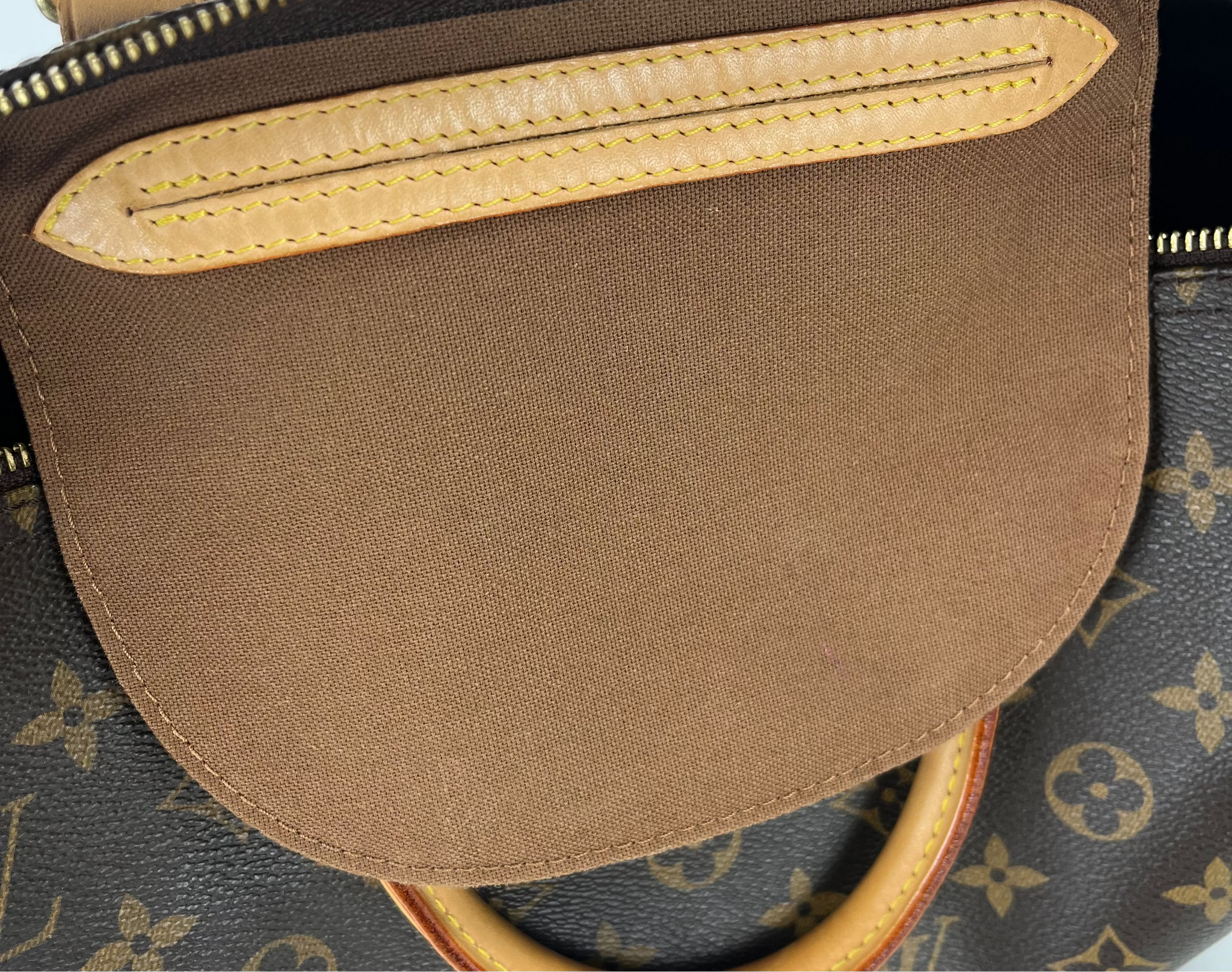 EXTERIOR: Light patina with light marks and watermarks on the vachetta leather