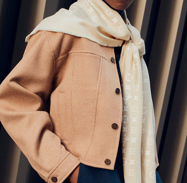 Authentic Louis Vuitton classique monogram shawl in ivorie. Golden beige