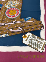 Authentic Louis Vuitton articles de voyage silk scarf. Can be used tied around the neck, waist, hair or as a bag accessory. Square 70X70cm