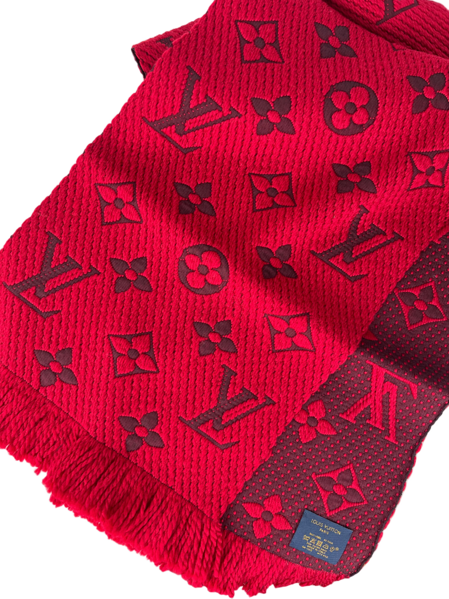 Authentic Louis Vuitton logomania scarf in red / ruby
