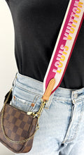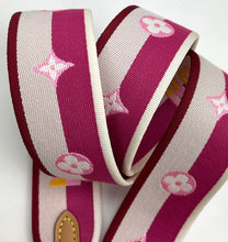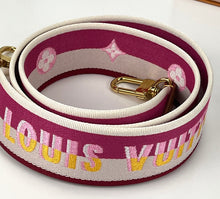 Authentic Louis Vuitton shoulder strap, bandouliere. Fuschia, pink and ecru. Nylon with embossed logo. Gold tone hardware. Naturally aged cowhide leather trim. 98cm, 4.5cm wide. Comes with Diane satchel on Louis Vuitton website